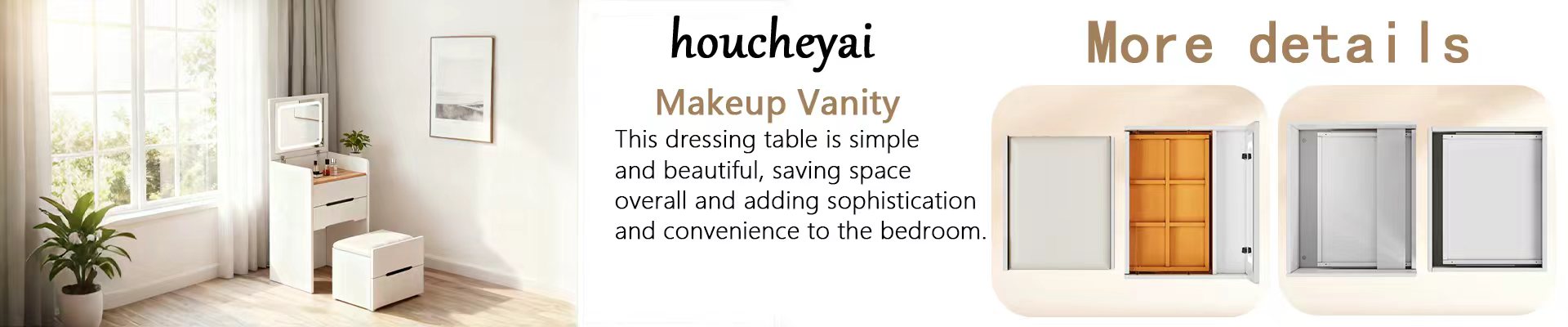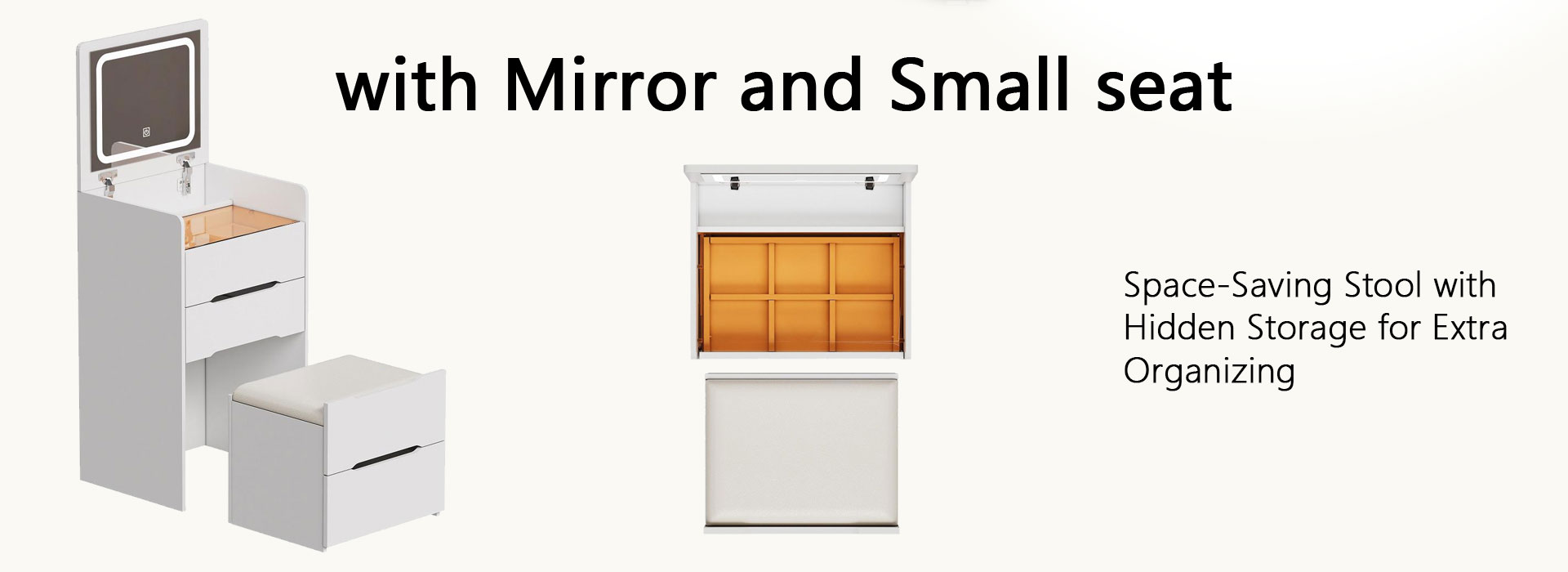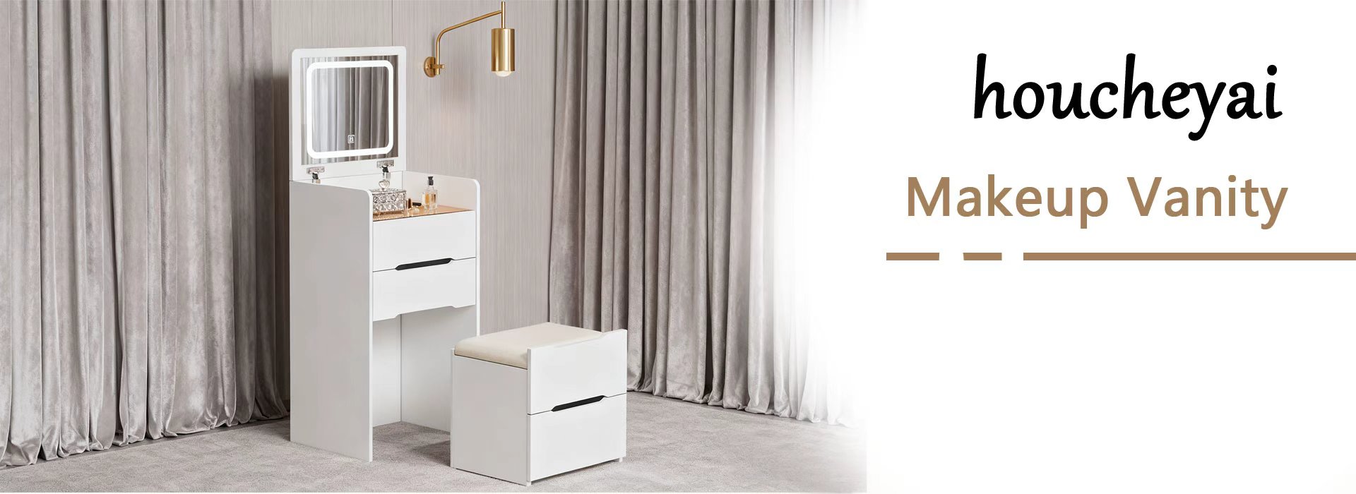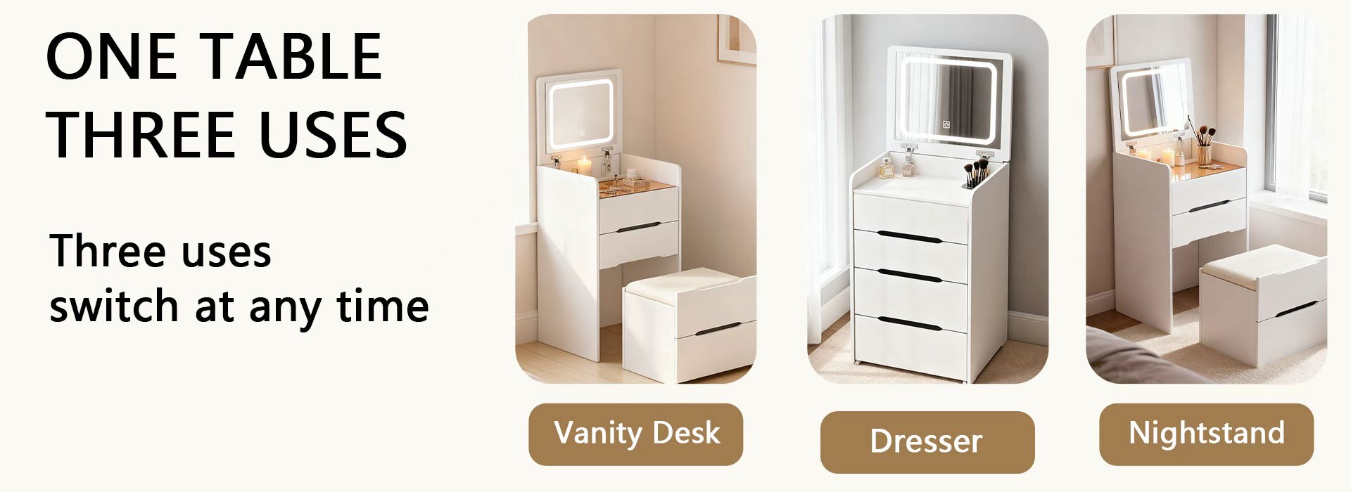 houcheyai 3 in 1 Schminktisch mit Hocker, Frisiertisch mit aufklappbarem Spiegel, sichtbarer Glasplatte, 3 Schubladen Frisierkommode mit LED-Beleuchtung Kleines Schminktisch-Set Kosmetiktisch fürs Schlafzimmer